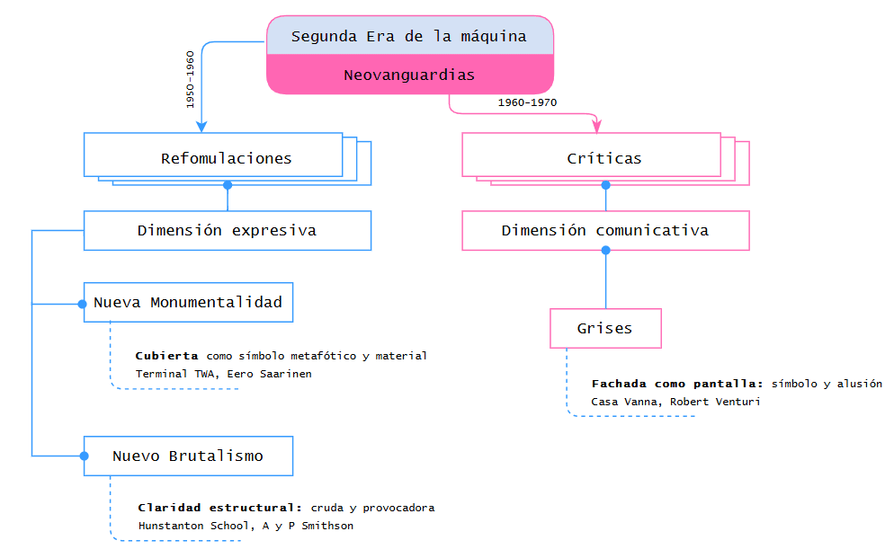 Como síntesis se puede entender que durante la segunda era de la máquina, las reformulaciones se centraron en cómo el modernismo se había vuelto rígido y carente de capacidad expresiva. La obsesión con la estandarización y la funcionalidad había despojado a los edificios de su capacidad para inspirar, emocionar y responder a los avances tecnológicos y las nuevas dinámicas sociales.
